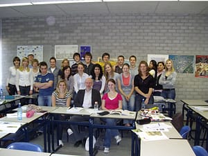 In een uitpuilend lokaal 201, mijn vroegere lokaal, gaf ik een minilesje over een aantal broodje aap-verhalen uit de geschiedenis van Dordrecht, wat erg leuk was om te doen. Zoals iedere schoolmeester vroeger had ik een krijtje op zak, maar een bord daarvoor ontbrak. Het is tegenwoordig allemaal ‘smartborden’ en elektronica wat de klok slaat, maar gelukkig hing er ook een bord waarop ik met een stift kon schrijven. Ik was het bordschrijven na zoveel jaren nog niet verleerd. We hebben veel gelachen en even ging de gedachte door me heen dat ik misschien maar weer moet gaan lesgeven. Hoewel, de bureaucratische rambam om het lesgeven heen en het dan weer moeten vergaderen, banden die gedachte snel weer uit.
